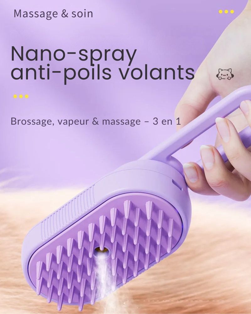 - Fonction : Démêlage, nettoyage à la vapeur, massage relaxant