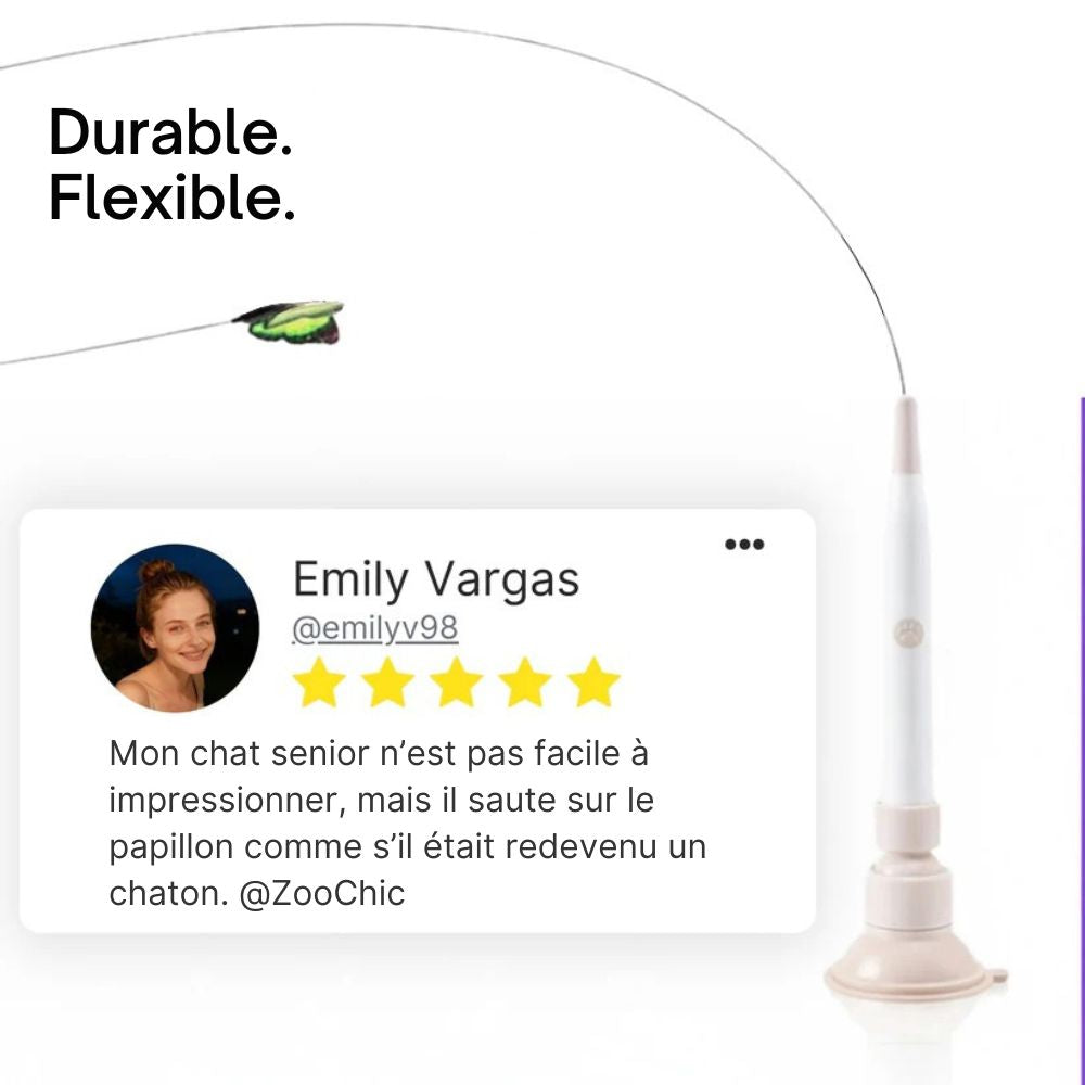 Transformez instantanément le quotidien de votre chat avec FlutterChase™ by ZooChic, le jouet papillon rotatif 360° qui réveille son instinct de chasseur.